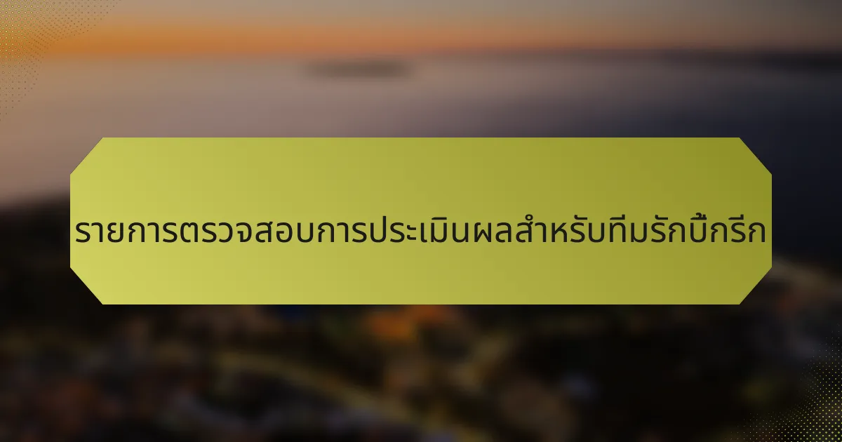 รายการตรวจสอบการประเมินผลการปฏิบัติงานสำหรับทีมรักบี้กรีกมีความสำคัญต่อการระบุจุดแข็งและจุดอ่อนภายในทีม โดยการมุ่งเน้นไปที่ตัวชี้วัดผลการปฏิบัติงานที่สำคัญ เช่น ความฟิตของผู้เล่น พลศาสตร์ของทีม และคุณภาพการฝึกสอน ทีมสามารถปรับปรุงประสิทธิภาพโดยรวมได้อย่างมีกลยุทธ์ วิธีการที่ครอบคลุมนี้ช่วยให้มั่นใจว่าผู้เล่นไม่เพียงแต่มีทักษะ แต่ยังมีความพร้อมทั้งทางร่างกายและจิตใจสำหรับการแข่งขัน