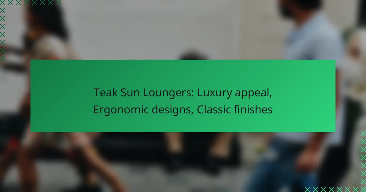 Teak sun loungers are known for their luxurious appeal, ergonomic designs, and classic finishes. These loungers combine high-quality materials with thoughtful design, making them a popular choice for outdoor relaxation.